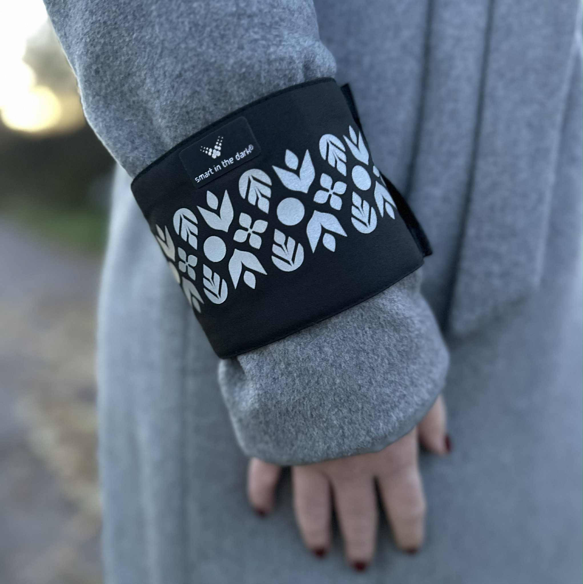 This smart reflective band is sure to get you noticed in the city streets. A great-looking accessory that fits equally well around the arm as around the leg. This reflective band for arm or leg provides 360 degree reflectivity and is available with five different reflective patterns from the Nordic Silver Collection – Cloudberry, Braid, Mountain Top, Northern Lights and Lingonberry. The band is simple to put on and take off thanks to the adjustable velcro strap. The perfect reflective gear for walking!